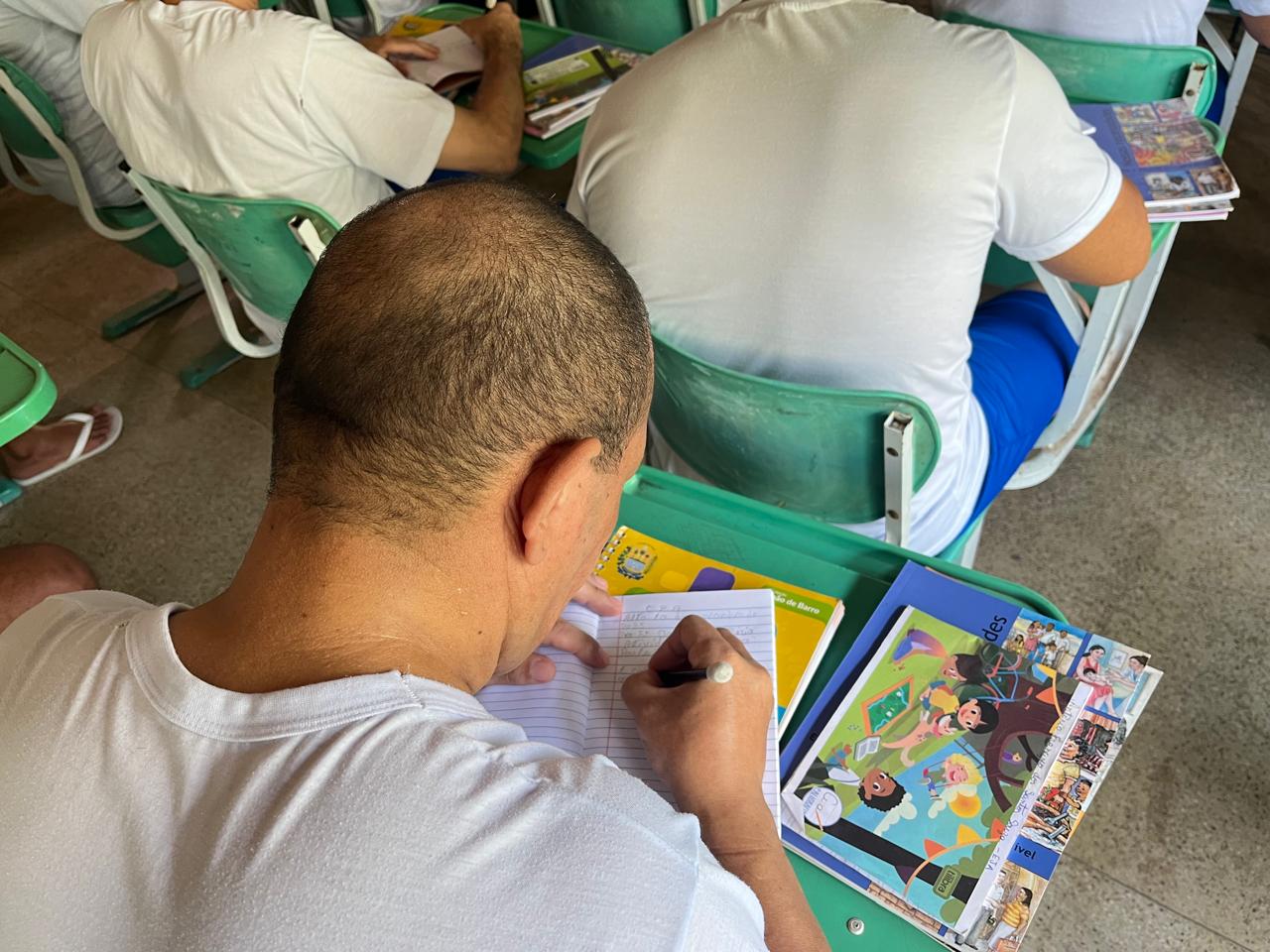 “Lá fora eu tinha pouco estudo, raramente eu estudava, eu não tinha tempo, só trabalhava, estudei somente o primário. Hoje graças a ajuda da professora eu consigo ler e escrever um pouco melhor. Vou continuar estudando e as oportunidades que aparecerem daqui para frente eu vou agarrar”, afirma o interno A. F. dos S. S., com seu jeito simples de falar, explica a grande oportunidade que está tendo de se alfabetizar e estudar no em uma unidade prisional localizada em Altos-PI.