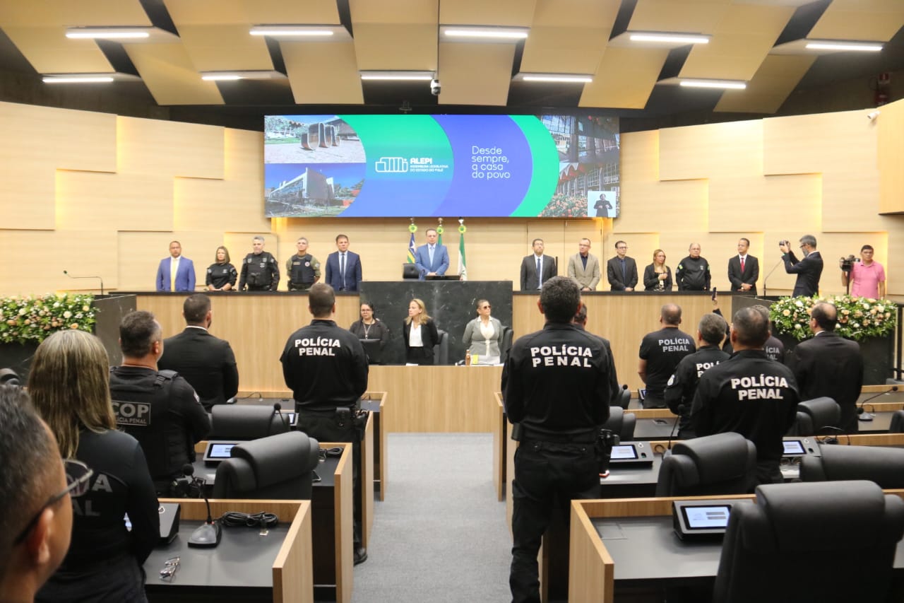 A Polícia Penal do Piauí foi homenageada, nesta quinta-feira (18), em sessão solene na Assembleia Legislativa do Piauí. A sessão aconteceu em face do Dia do Policial Penal, comemorado nacionalmente no dia 4 de dezembro. A proposição foi do Deputado Gessivaldo Isaías. O Secretário da Justiça, Coronel Carlos Augusto, policiais penais, diretores da Sejus e gerentes de unidades penais estiveram presentes na sessão.