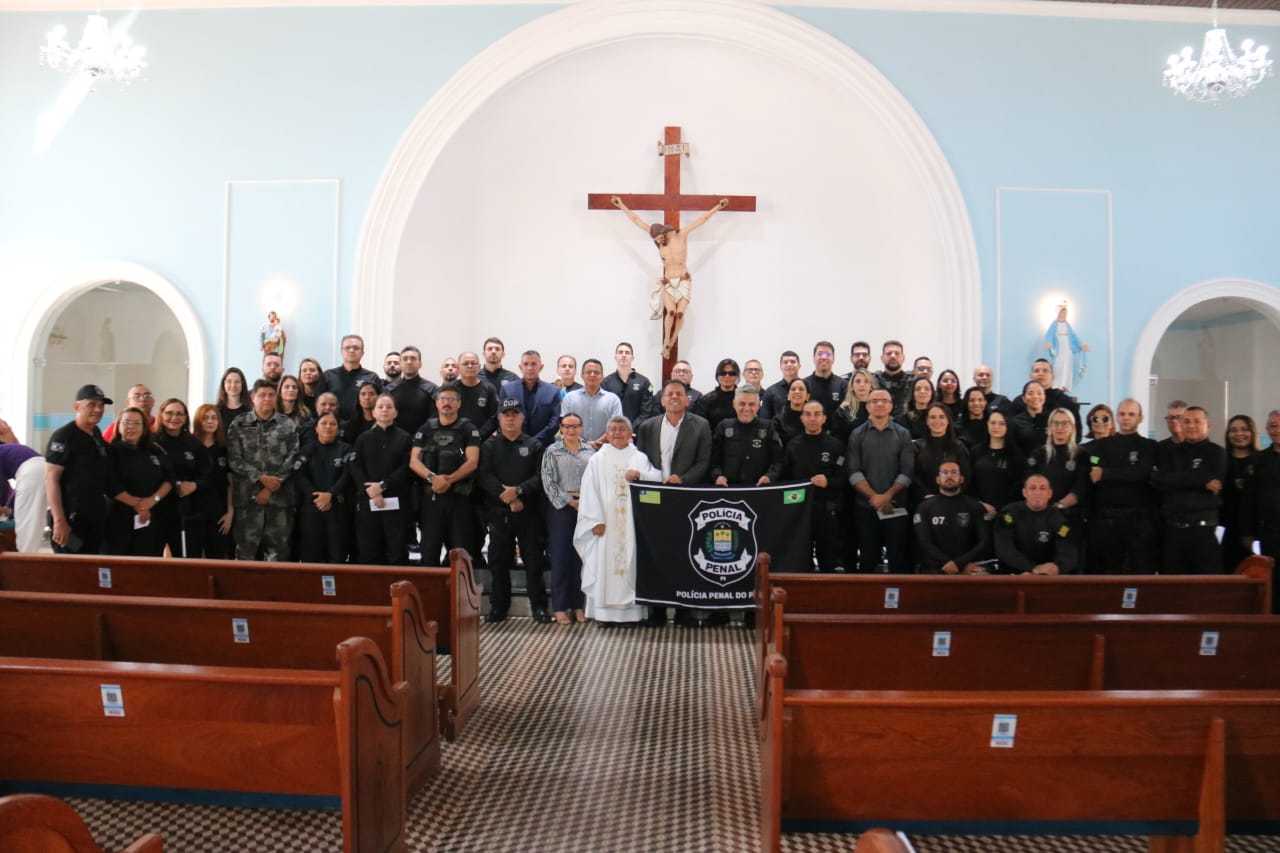 A Secretaria da Justiça do Piauí realizou, nesta quinta-feira (4), uma missa em ações de graças pelo Dia do Policial Penal. A missa aconteceu na Igreja de Nossa Senhora das Graças, a conhecida capelinha de palha, e contou com a presença de policiais penais, diretores e do Secretário da Justiça Coronel Carlos Augusto.